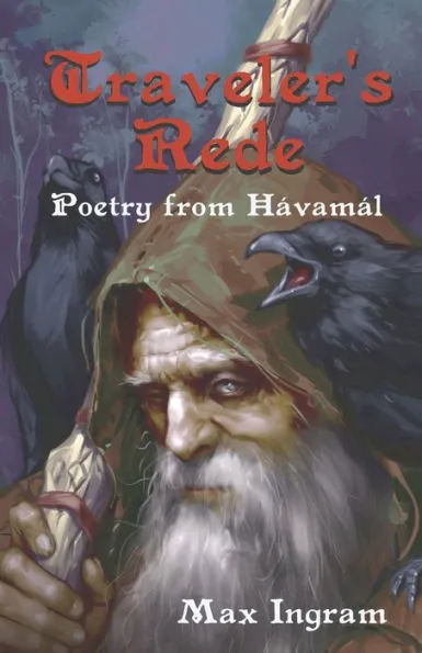 Max Ingram’s Traveler’s Rede: Poetry from Hávamál, is a terrific look behind the curtain at how and why a translator chooses the words they do that make up the final product of a translation, and what license they may take with the original words and/or meanings. The book is laid out simply and well: the reader is presented with the author’s translation in stanza form, below that is the original Old Norse with the literal translation of the Old Norse words, and the following page contains notes and further details where Ingram felt more explanation or information was needed.